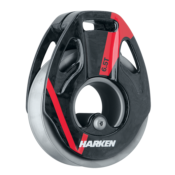 Harken V blocks are standard with 3D-molded carbon sideplates, titanium sheave, and captive titanium roller bearings. V blocks are easy to disassemble for inspection and maintenance.