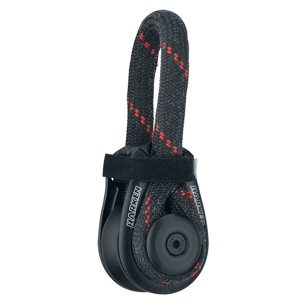 These multipurpose blocks are a must on racing yachts of all sizes. Opening sideplates make them easy to deploy, allowing crew to quickly fasten them wherever needed—perfect for temporary leads, line deflection, and static line functions requiring small adjustments. A strop soft-attach is fixed on one side, but is easily removable on the other. The strop carries the block’s primary load and articulates for a fair lead. The Velcro® strap is permanently attached to one sideplate and holds the block securely closed when sideplates are aligned—even under the highest loads. The strap has a broad reflective tab for easier operation with gloves.