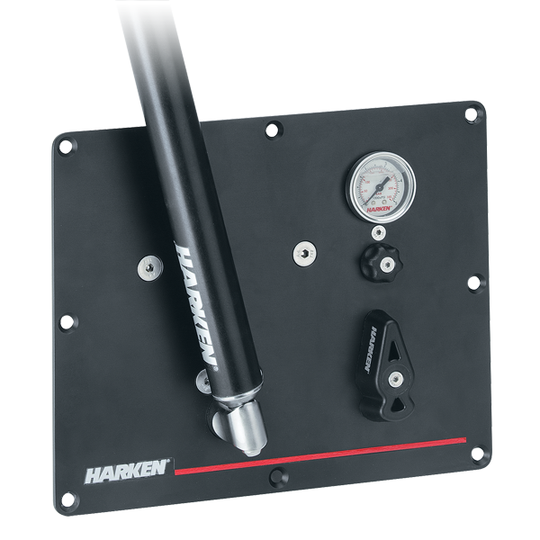Harken single and multifunction valve panels are used by larger cruisers to control systems like backstays, boom vangs, and outhauls. Available as kits, single-function panels are offered with 2-liter reservoirs, multifunction panels with 4-liter reservoirs. Both panels come with pumps, handles, gauge, pressure relief, and release functions. Panels come standard with a 1- or 2-speed pump.